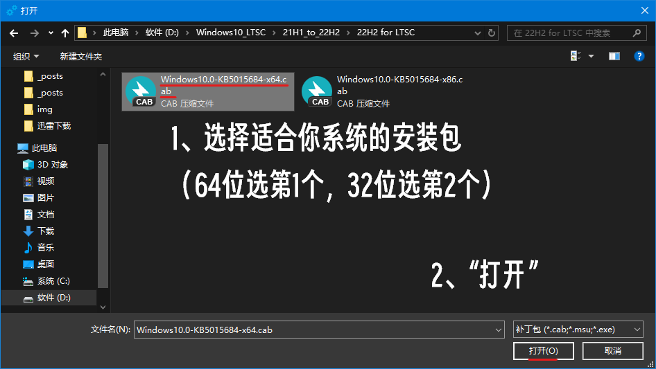 来到存放解压好的更新文件的文件夹,选择适合你系统的更新。